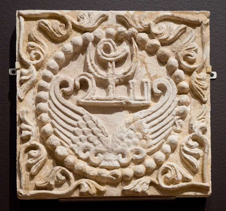 wings, Persian inscription: stucco, 6th c., Met 32.150.48. For other views see Met.