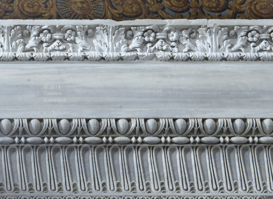 early 2nd c. entablature and other elements, Lateran Baptistery, Rome. The baptistery octagon and narthex have their own interior page.
