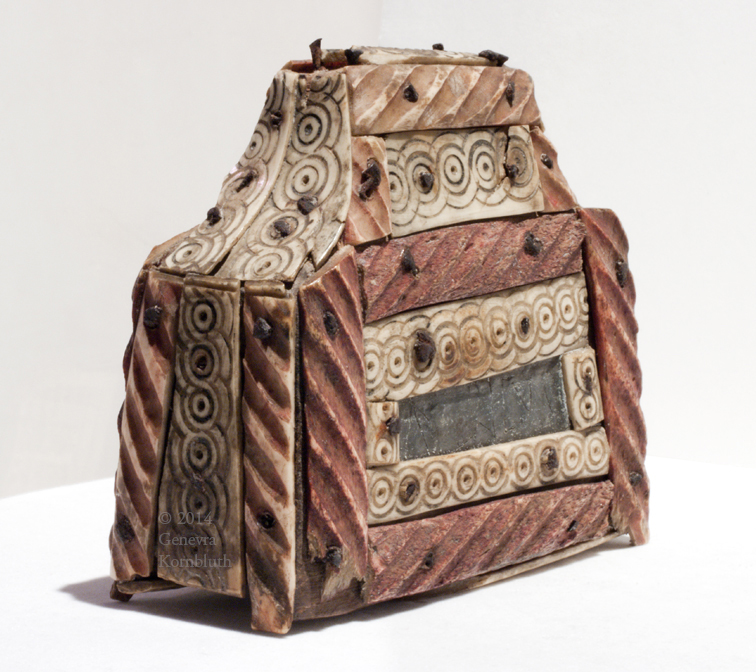 ivory medicine box converted to reliquary, Asclepius and Hygeia, late 5th c., VHM, loan from Sion CT. This work has its own page.