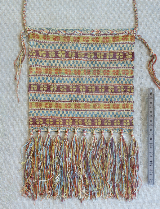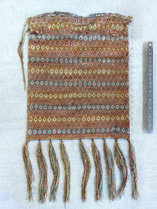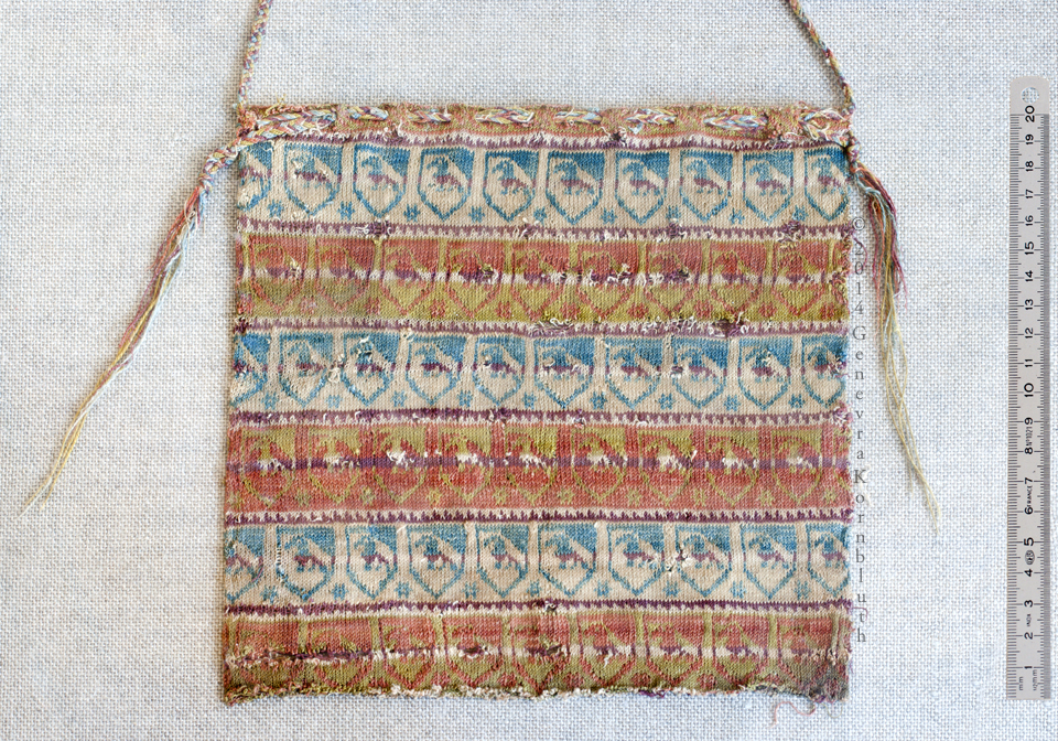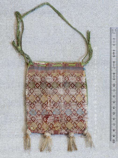 Woven silk purse with strap, Spain 13th-14th c., length 12.2 cm, Sion CT purse 258