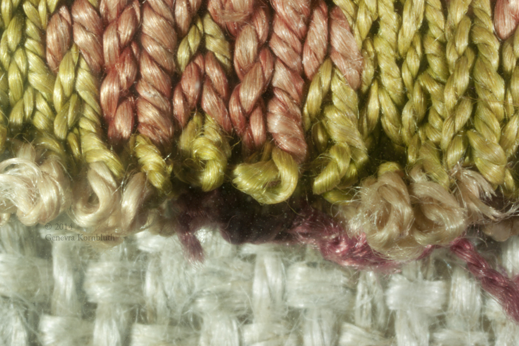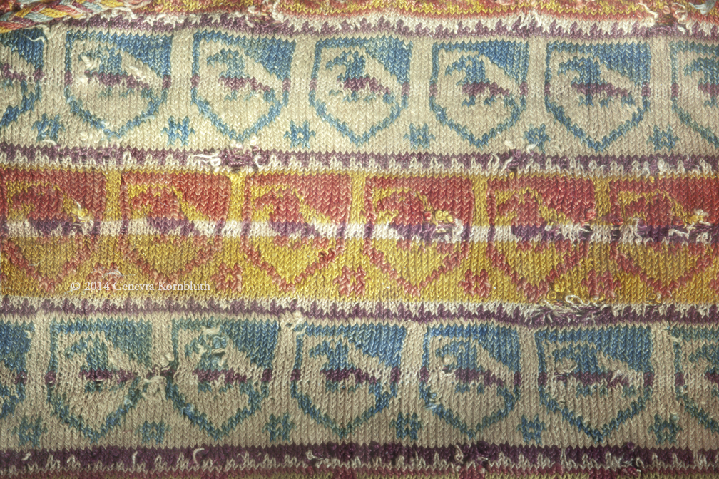 Historical Archive: Sion purse 270 fourteenth century, western or southern Europe knitted silk; length without strap or tassels: 20.5 cm (8 inches) number 270 in Brigitta Schmedding, Mittelalterliche Textilien in Kirchen und Klöstern der Schweiz (Bern, 1978). sacristy, Notre-Dame de Valère, Sion (Sitten), canton of Valais, Switzerland |