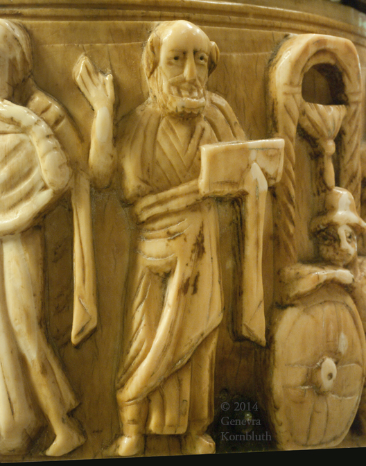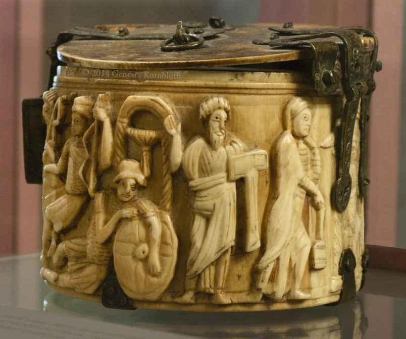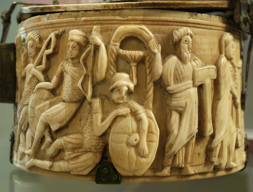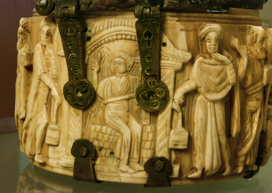 Historical Archive: Sion Resurrection pyxis sixth century, eastern Mediterranean (Syria or Egypt?), with later bronze fittings ivory, height 7.2 cm, with cover 8.4 cm, diameter 11 cm Valais Historical Museum no. MV 152/1, Valère, Sion (Sitten), canton of Valais, Switzerland loan from the canons of Sion cathedral |