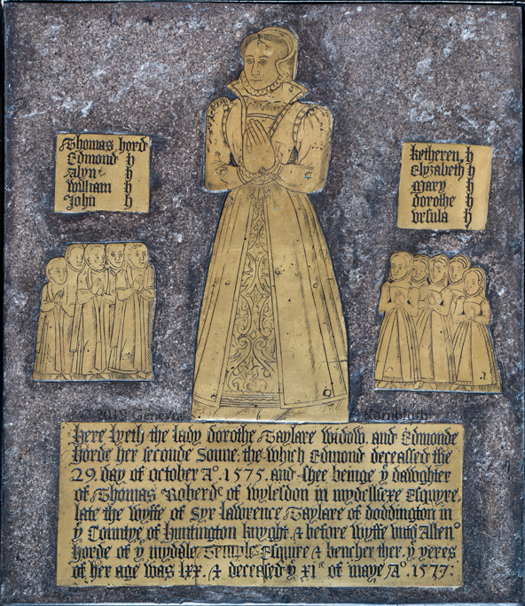 memorial brass of Dorothy Taylare/Taylard, d.1577, and children, Ewell