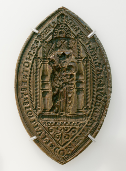 seal matrix for the Royal Hospital of St Katharine-by-the-Tower and the Royal seal for Ecclesiastical Causes, copper alloy, 1548, MoL A11011