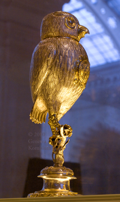 flagon in the form of an owl, silver gilt?, U. Sautter, Ulm 1580s, MAAB. For details see MAAB.