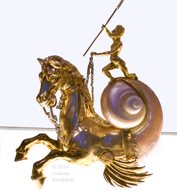 Sea horse, nautilus shell and metalwork (silver gilt?), Elias Geyer, Leipzig 1590s, MAAB. For another view see MAAB.