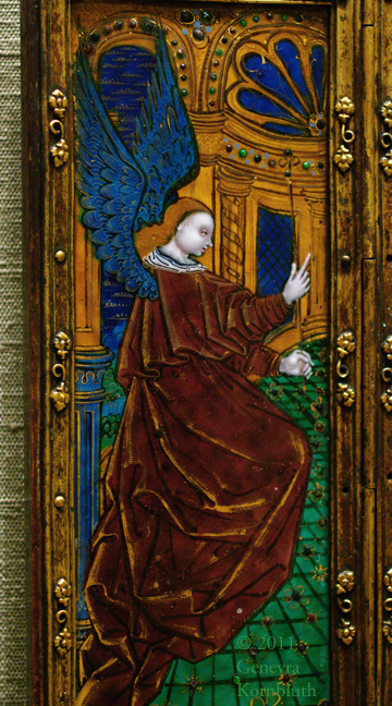 Annunciate angel, enamel triptych, early 16th c. Limoges, Master of the Large Foreheads, PMA 1930-1-62
