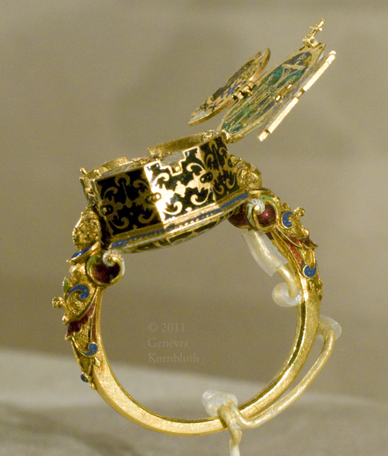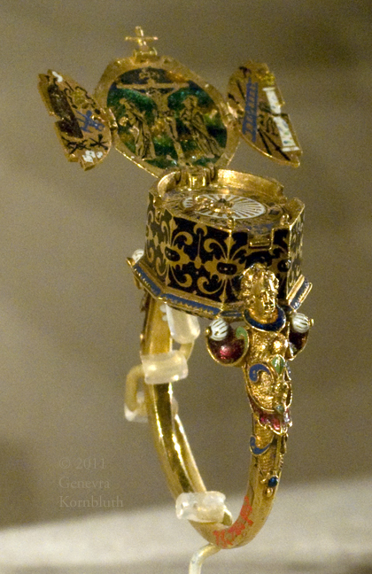 ring with watch and Crucifixion with instruments of the Passion, Jakob Weiss, gold and enamel, c.1585, IMA 73.70.93