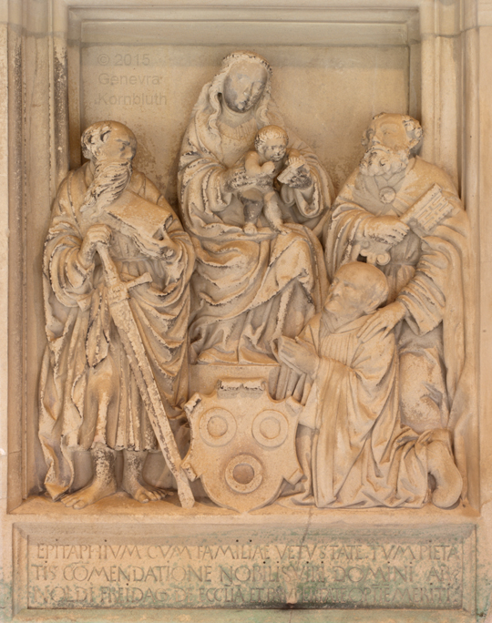 Canon Arnold Freitag (d.1546), sandstone, upper panel, HildMus G25