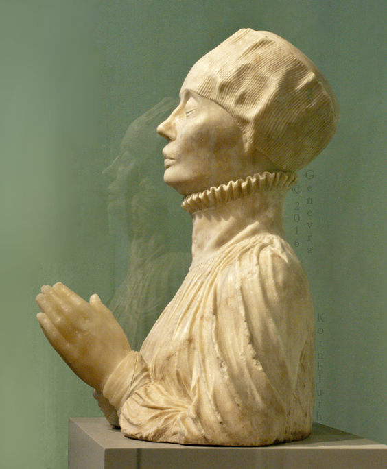 St. Genevieve, limestone, school of Troyes, c.1500-25 , Reims MSR D.978.31016. For other views see Reims.