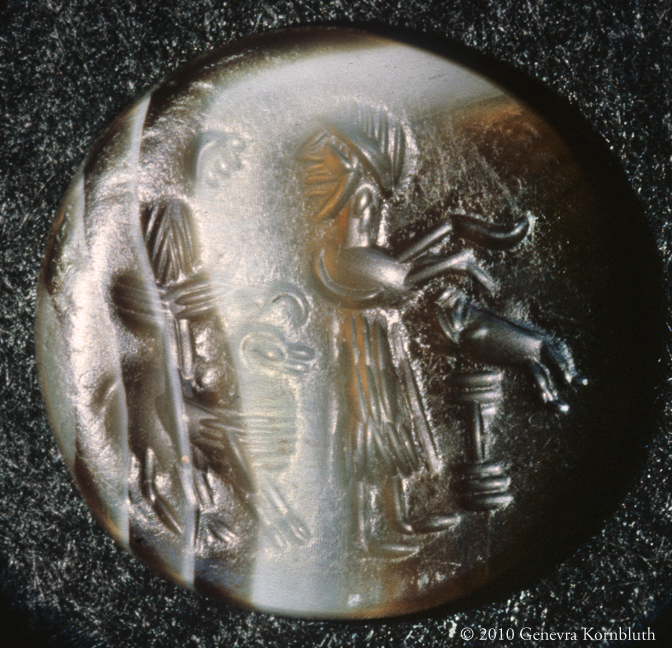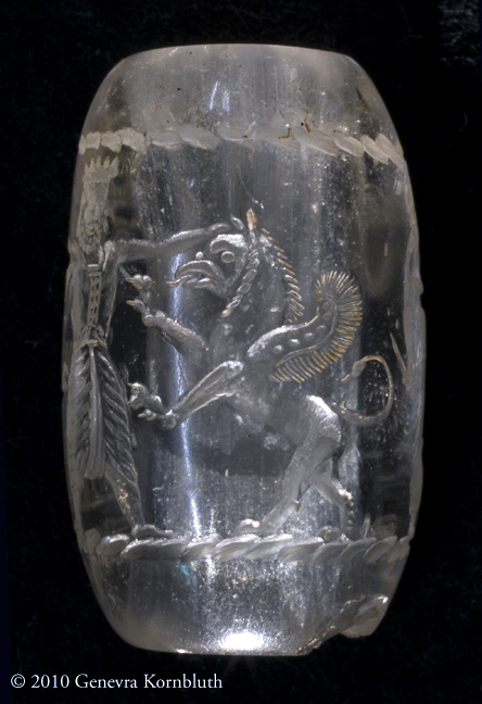 cylinder seal, probably Sassanian (224-651), crystal, Leiden A 1952/1.2. For other views see Leiden.