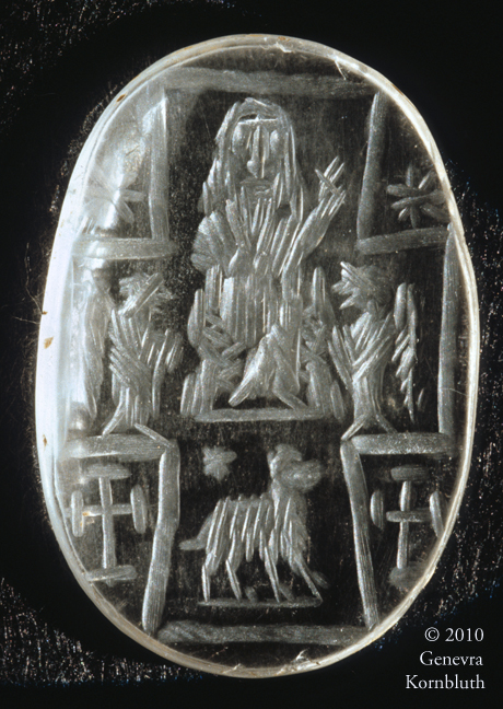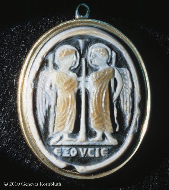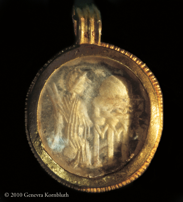 Angel at the Sepulchre, crystal intaglio in gold pendant, 6th-7th c., DO 58.30. For another view see DO.
