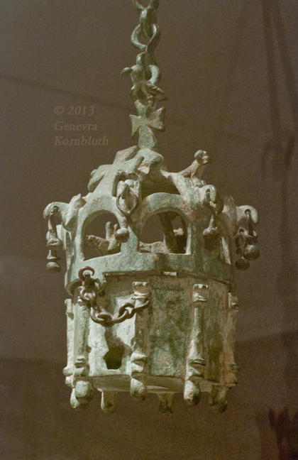 censer with crosses, birds, and columnms, bronze, 6th/7th-c. Egypt, UMMA 1960/1.4