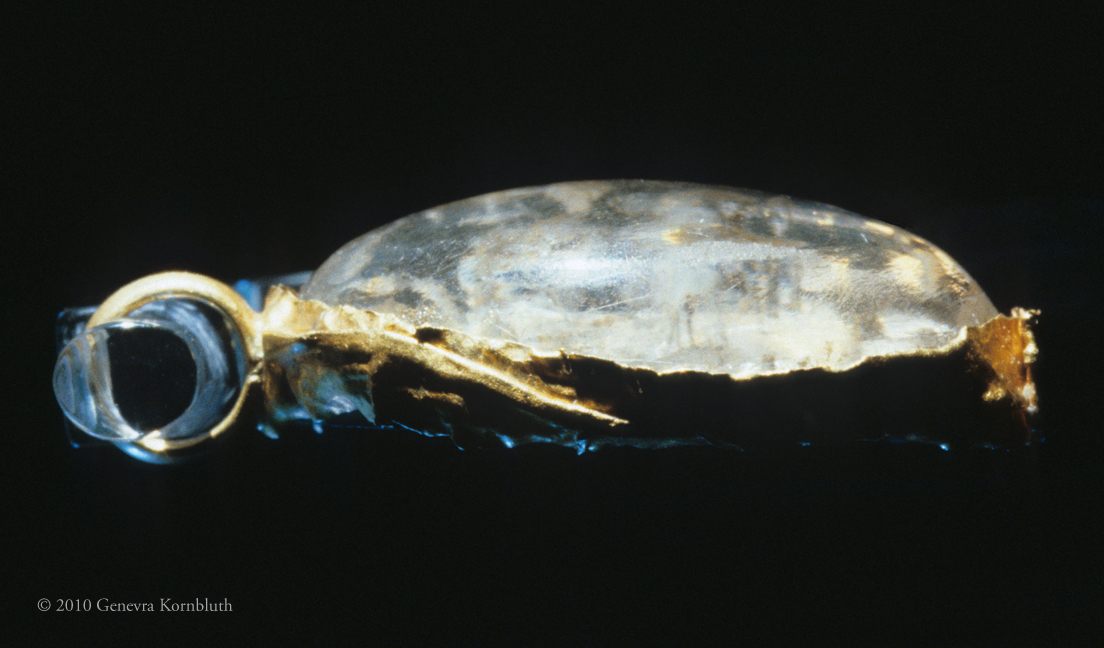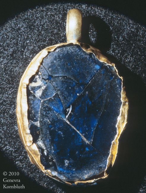 Christ Emmanuel, crystal pendant backed with blue glass, 6th-7th c., profile, DO 50.35