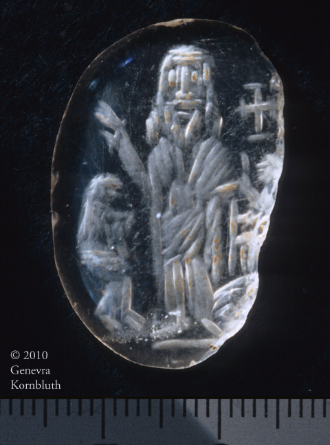 Christ and the Haemorrhoissa, obverse, crystal intaglio, 6th-7th c., ANS 307