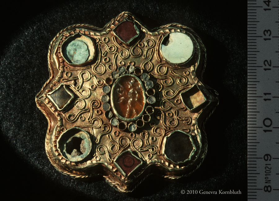 Merovingian quatrefoil fibula with Roman intaglio of Mars, from Heilbronn, 6th-7th c., WLM A1168