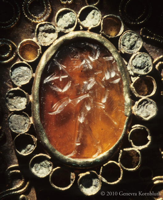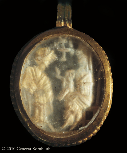 Adoration of the Magi (abbreviated), crystal intaglio in gold pendant, 6th-7th c., DO. For profile see DO.