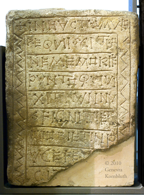 grave stone of Panto from Lahnstrasse 18, Mainz, prob. from St. Theonest, limestone, 6th to 7th c., LMM S3020