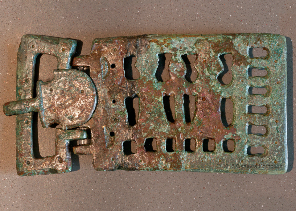 two people flanking Tree of Life, bronze buckle fr. Marchélepot, c. 550-600, SMB MVFg