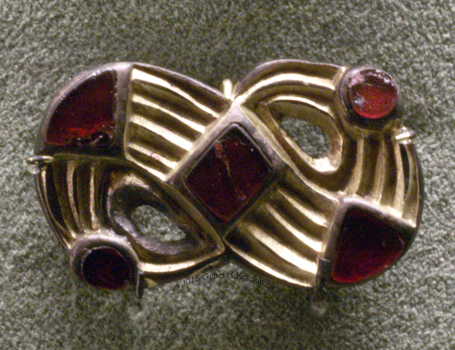 bow fibulae from Szentendre grave 56, c.550-70, displayed as worn, HNM
