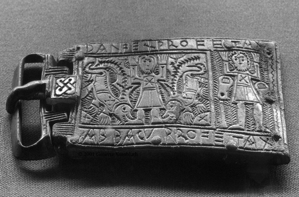 Daniel and Habakkuk buckle, bronze, region of Mâcon, late 6th c., MAN. For color see MAN.
