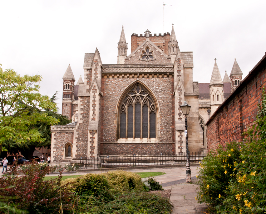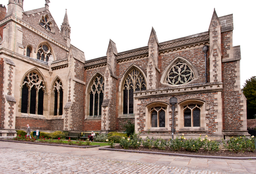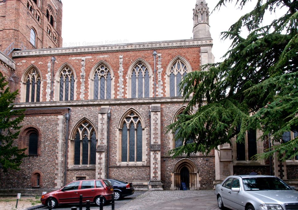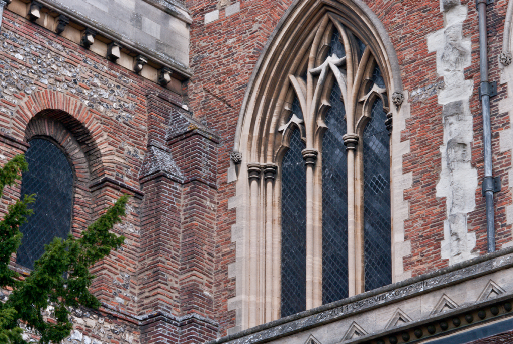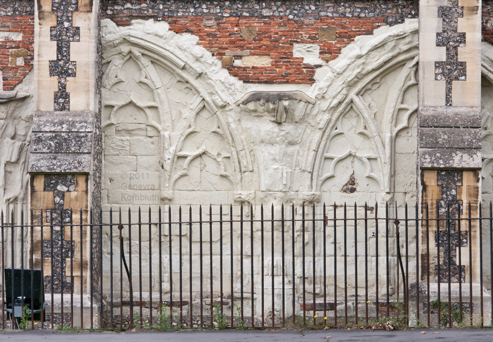Lady Chapel from east, from inside Waxhouse Gate wall; exterior window tracery Gilbert Scott