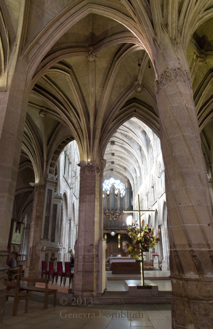 nave elevation from northwest: round pier 1st third of 13th c., compound piers 2nd half 15th c.