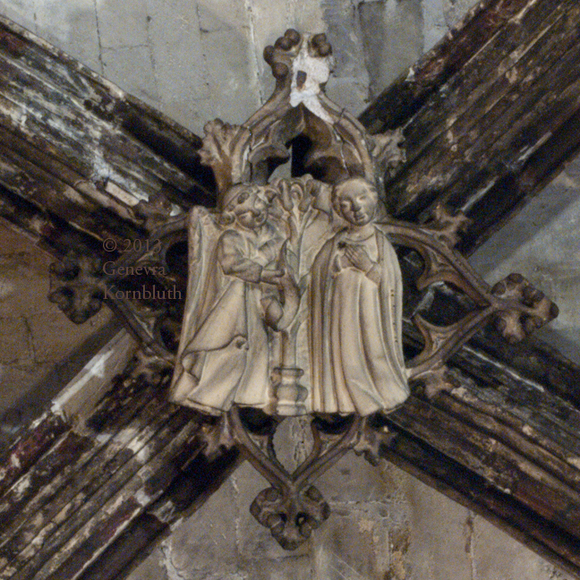 keystone in south aisle, late 15th c.: Joachim and Anna
