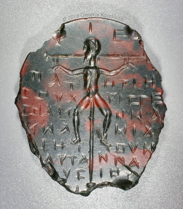 Crucifixion amulet, jasper, E Mediterranean late 2nd-3rd c., BM 1986,0501.1, which has its own page