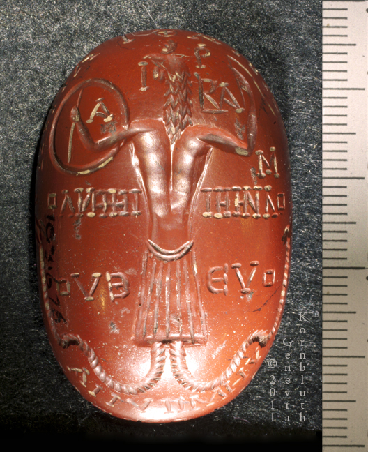 Abrasax, jasper intaglio, 3rd c., Fitzwilliam. This work has its own page.