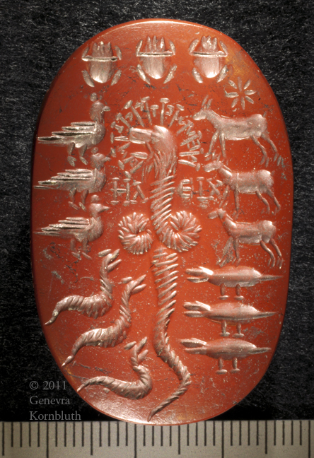 Chnoubis and animals, jasper intaglio, 3rd c., Fitzwilliam. This work has its own page.