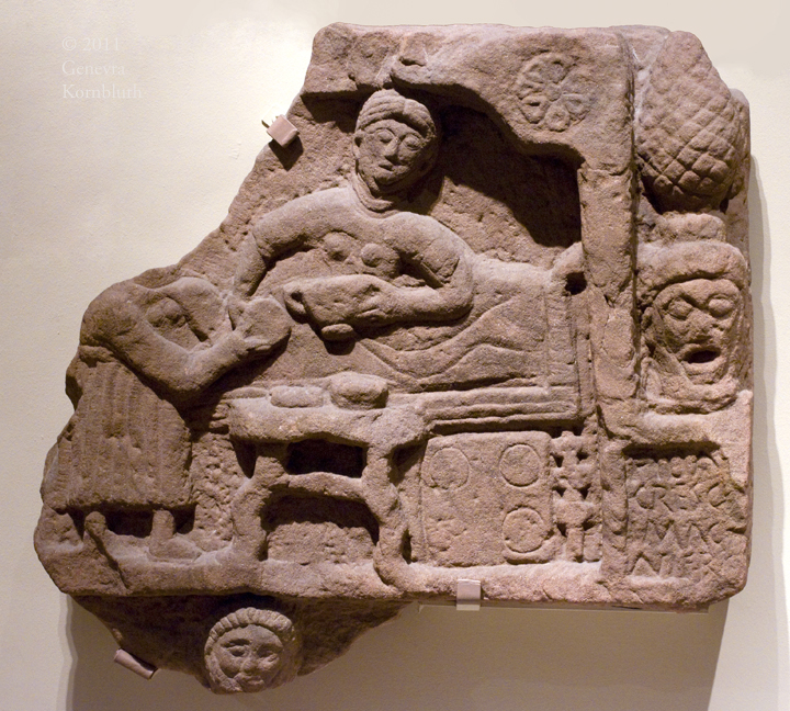 grave stone of the daughter of the standard-bearer Crescens with funeral banquet, from Kirkby Thore (Eng.), 2nd-4th c., BM 1970,0102.7