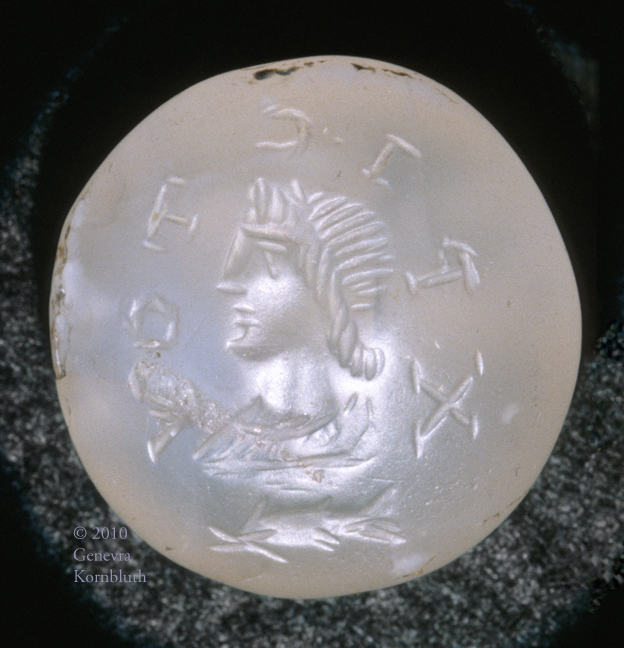 portrait seal with fish, chalcedony, 3rd c., BN Chab. 1334