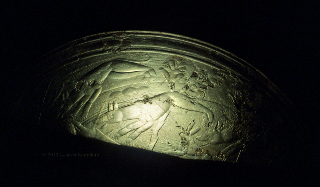 fragmentary hunt scene, 3rd or 4th c. (possibly German or Alexandrian), blown and cut glass, TMA 28.1888