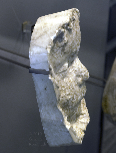 marble gravestone fr. Crimea Chersonesus, 2nd-3rd c. with 6th c. Greek inscription, Hermitage Х-1039. For oblique view see Hermitage.