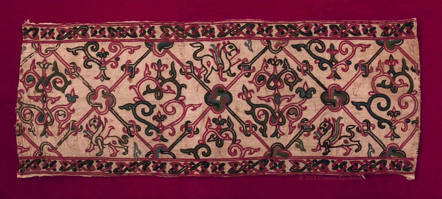 linen with silk embroidery (formerly a purse), 13th c., Sens CT