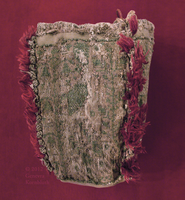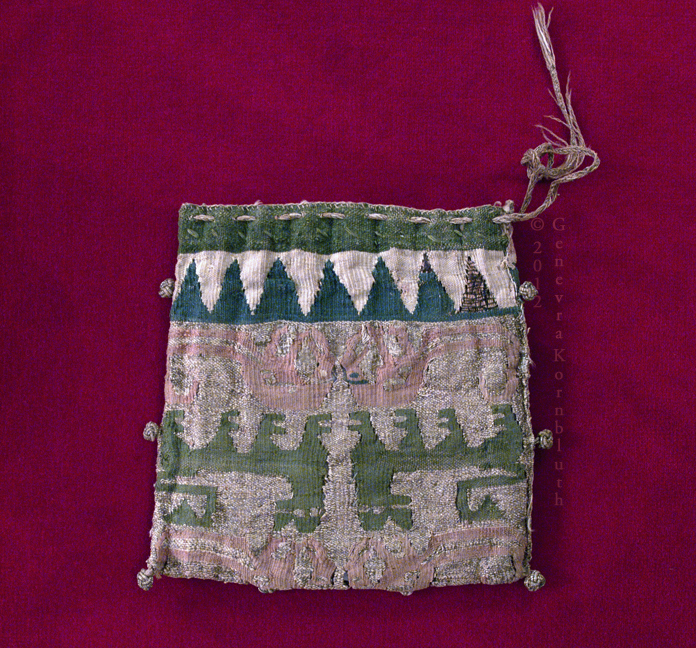 purse, silk, edge strips 14th c., fabric Byzantine, Sens CT