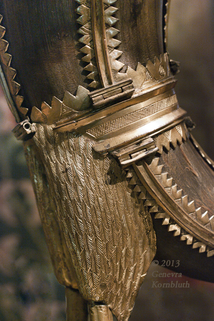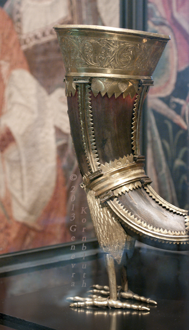 drinking horn with griffon feet: horn, copper, copper gilt; Germany c.1500, Cluny Cl.2324