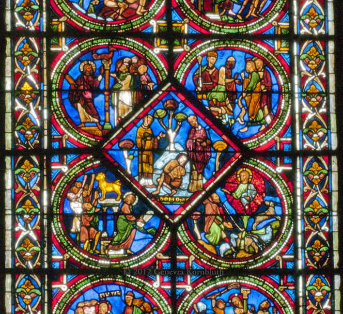 Sens, Cathedral of Saint Étienne, ambulatory stained glass c.1207-15. For additional windows see Sens interior page.