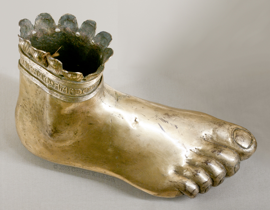 foot reliquary of St. Adalhard, copper gilt, Italy 14th c., Cluny Cl. 1400. For profile see Cluny.