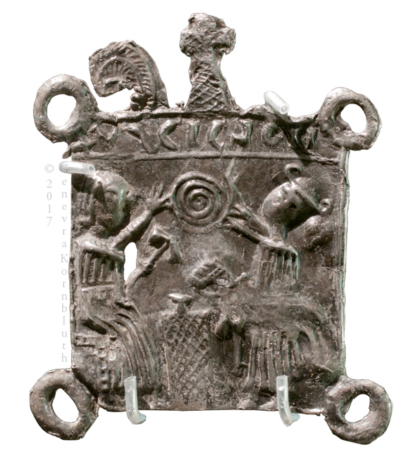 door fitting fr. Flæte stave church, Arnafjord, wrought iron/copper, 13th c.?: dragon heads, unicorns, pig, lion, horses, bird; Bergen MA 281a or b