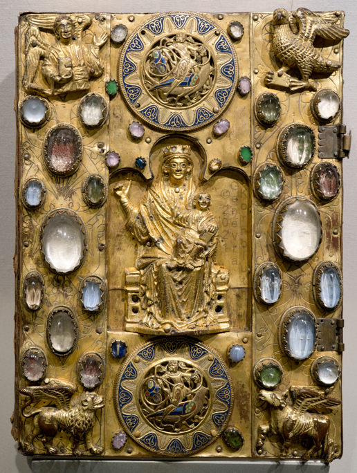 book cover: Christ in Majesty, copper gilt and enamel 21.3 x 11.2 cm., France c.1210, NGA 1961.9.182. This work has its own page.