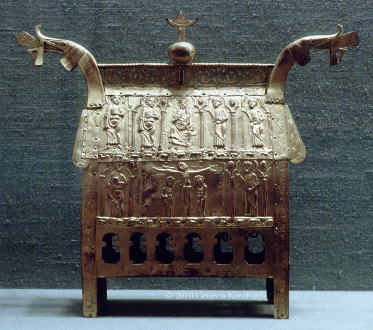 Vatnås reliquary, copper gilt on wood core, Norway c.1250-1300, Copenhagen, National Museum 9085. For details see Copenhagen.