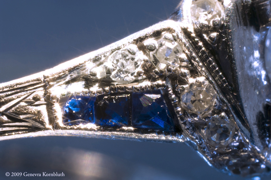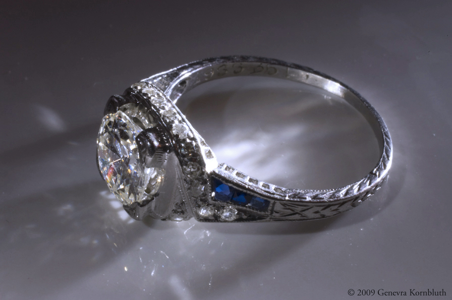 Ring: platinum, diamonds, and sapphires, dated 1933, p.c.