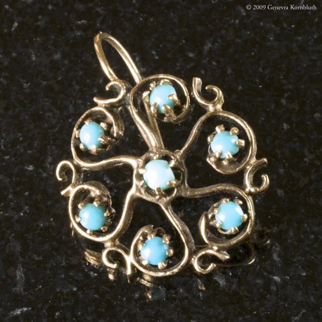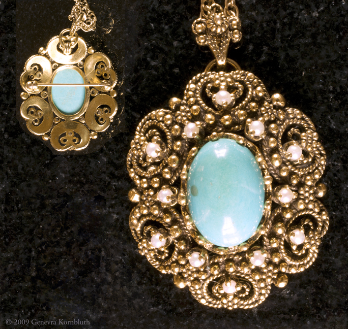 Pendant: turquoise, gold, and pearls, probably early twentieth century, p.c.