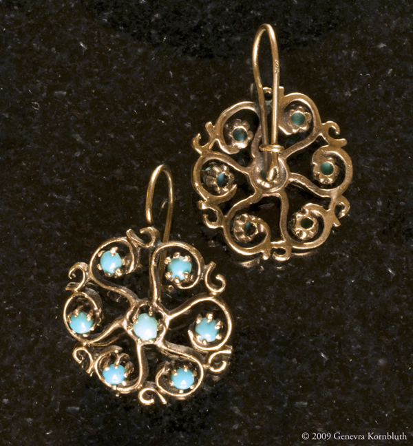 Earrings: turquoise and gold, probably early twentieth century, p.c.