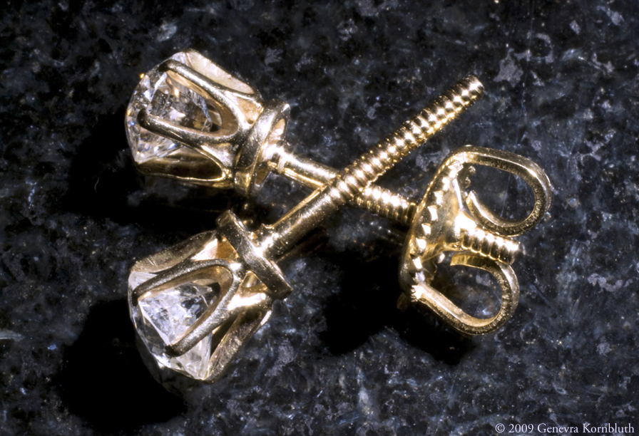 Earrings: diamond and gold with screw back, probably early twentieth century, p.c.