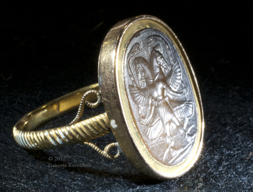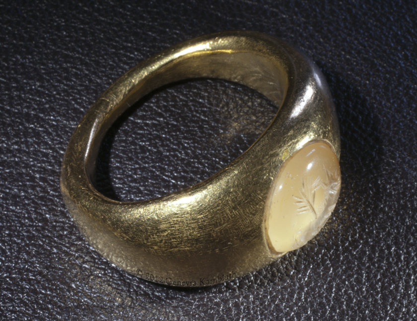 20th-c. gold ring with 1st-c. chalcedony seal, p.c., which has its own page