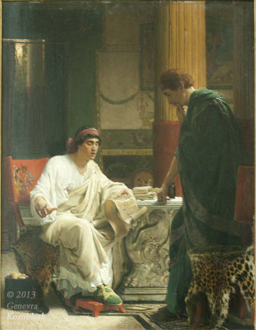 Historical Archive: UMMA Alma-Tadema Vespasian Lawrence Alma-Tadema 1866 Vespasian hearing from one of his generals of the taking of Jerusalem by Titus oil on panel in original frame, 86.5 cm x 70.6 cm x 7.1 cm (34 1/16 in. x 27 13/16 in. x 2 13/16 in.) Ann Arbor, University of Michigan Museum of Art 2004/2.143