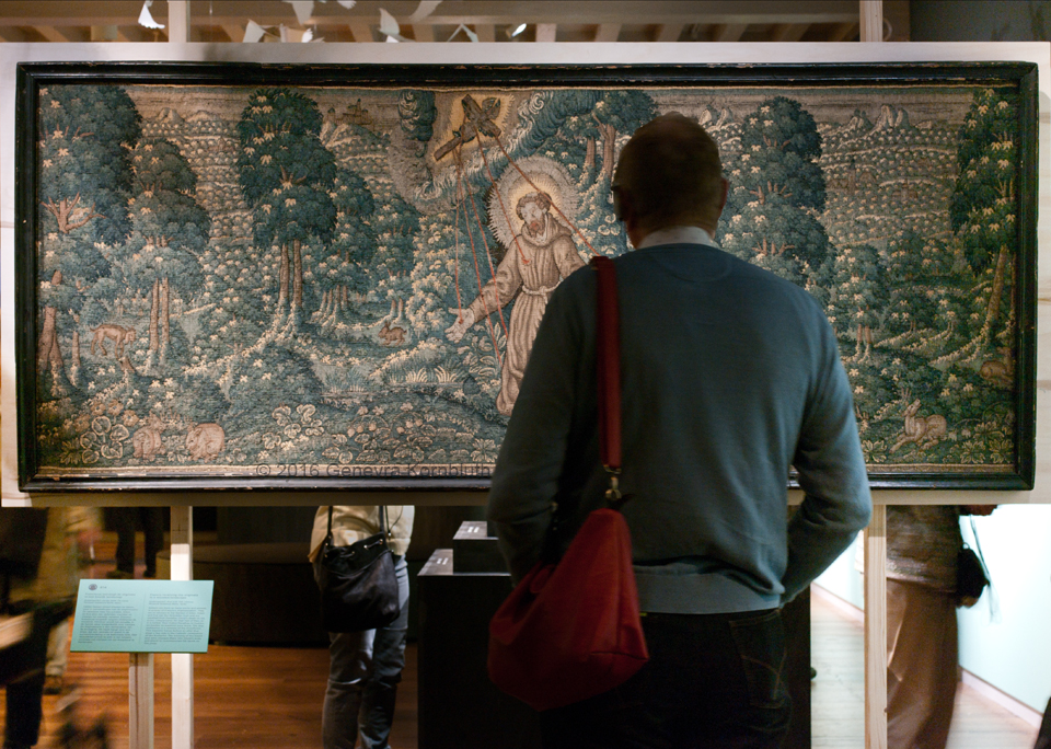 Historical Archive: Stigmatization of St. Francis tapestry Oudenaarde? first half of the 17th century photographed in Utrecht Museum Godshuis Belle, Ypres